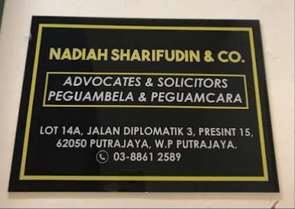 Alamat: 14 A, Nadiah Sharifudin & Co., Jalan Diplomatik 3, Presint Diplomatik, 62050 Putrajaya, Malaysia.