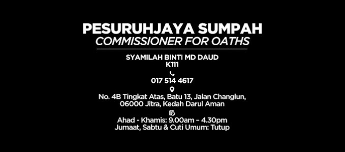 📌 Lokasi bagi Pesuruhjaya Sumpah Jitra Syamilah Md Daud