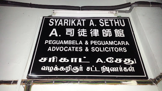 Syarikat A Sethu, yang berlokasi di 15, Tingkat 1 No, Syarikat A Sethu, 5b, Jalan Aji, Kampung Gubah, 85000 Segamat District, Johor, Malaysia, adalah syarikat yang berkepakaran dalam perkhidmatan hukum. Ia telah memenangi reputasi yang baik sebagai peguam profesional dan berpengalaman.